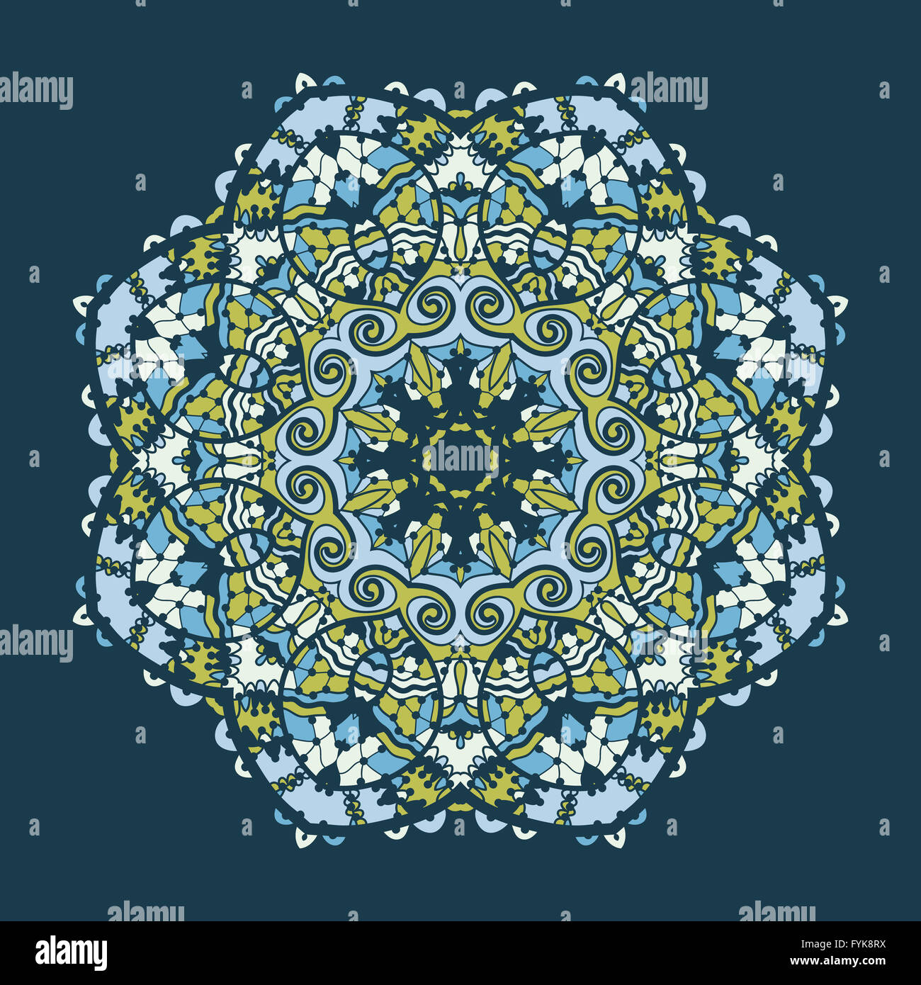 Vector islamic arabesque mandala design in shades of blue color Stock Photo, Royalty Free Image